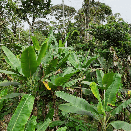Unsere Chewy-Bananas stammen zu 100 % aus Waldgärten unserer Kleinbauernfamilien im Amazonas-Regenwald Ecuadors. Viele dieser Familien kennen wir persönlich und sind wenn möglich bei der Ernte dabei.