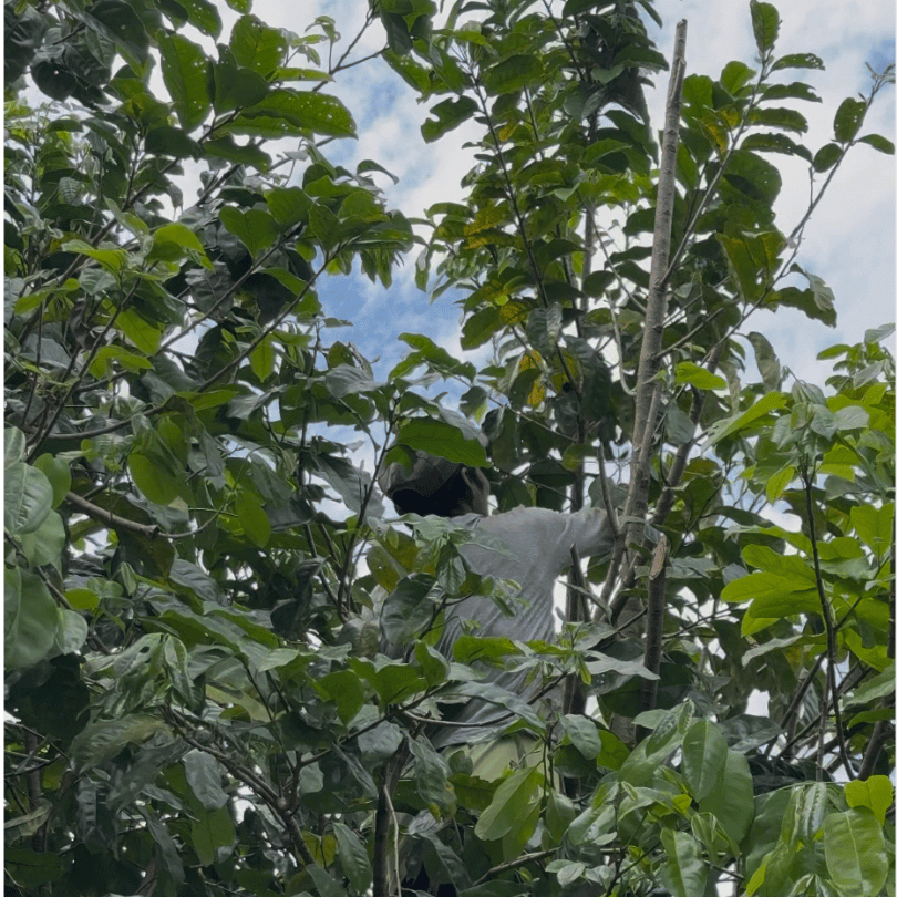 Unsere Guanabana-Blätter (auch unter Soursop oder Graviola bekannt) stammen zu 100 % aus Waldgärten unserer Kleinbauernfamilien im Amazonas-Regenwald Ecuadors.