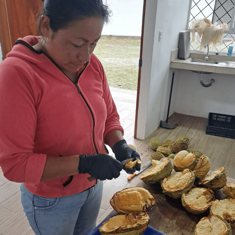 Unser Macambo stammt zu 100 % aus Waldgärten unserer Kleinbauernfamilien im Amazonas-Regenwald Ecuadors, aus der Region Napo.